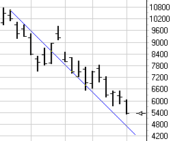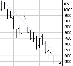 Continuing the example, slope = ($169.00 - $144.00) / 12 bars,