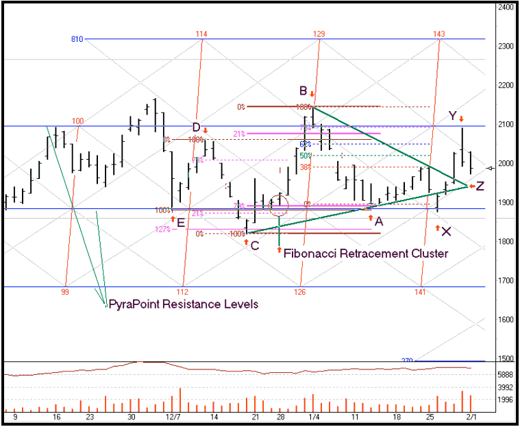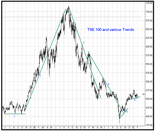 In the daily close only chart of the TSE-100 in Figure 1 you can