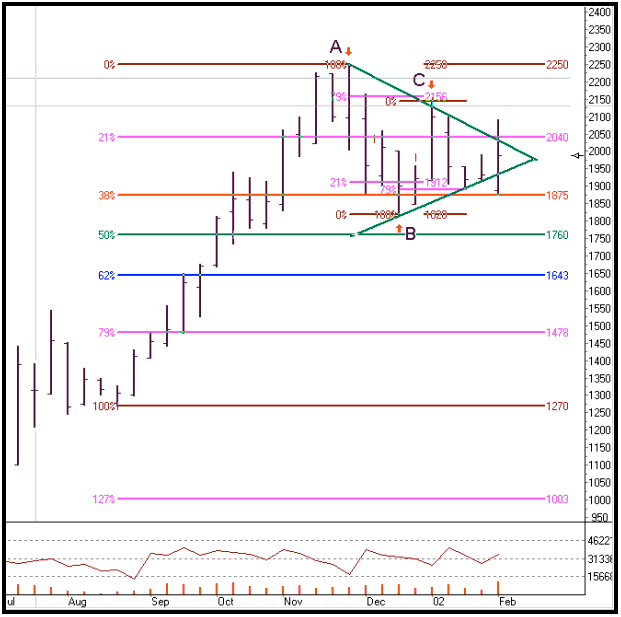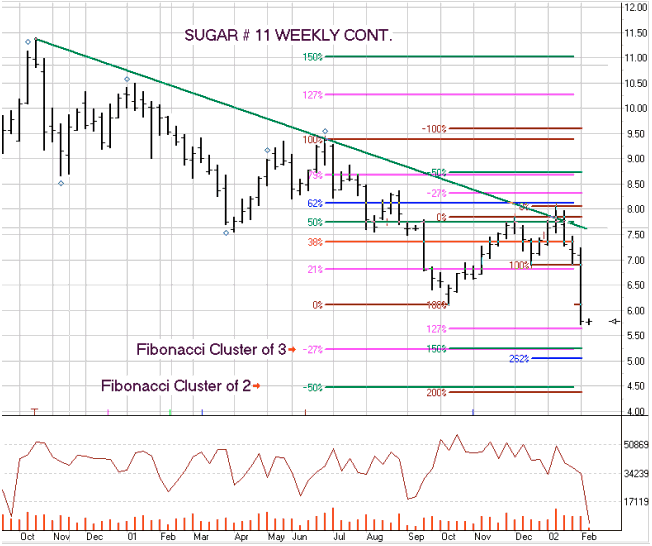 relationship of the last weeks low to the 38% Fibonacci retracement