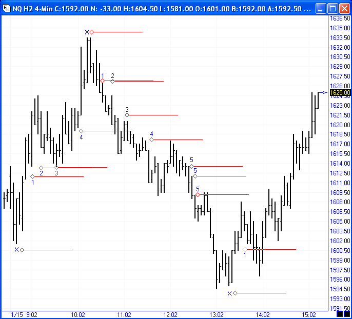 - On the 8th bar, raise your stop to the low of the last 5 bars.