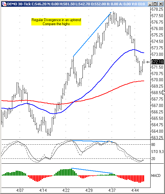 Regular divergence in an up trend (higher