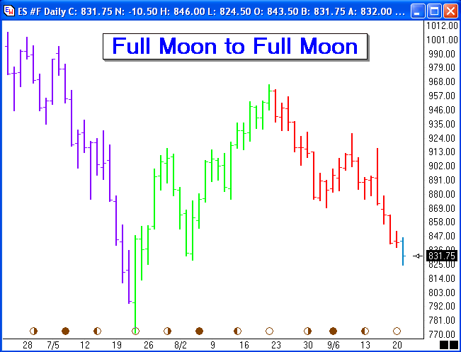 moon. The bars are colored from a Full Moon to the following