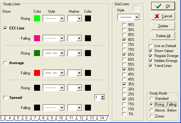 The colors and the line styles used by the Regular Divergence,