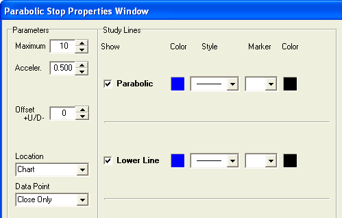 parameters for the Parabolic stop should also be adjusted to see the