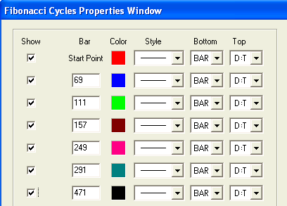 these numbers into the bar counts using the Fibonacci Cycles tool in