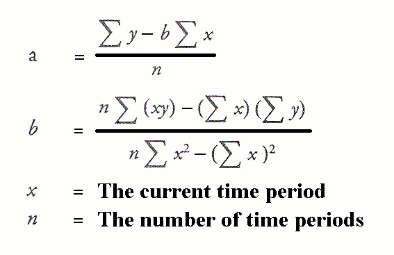 points it passes through. The formulas use the least squares