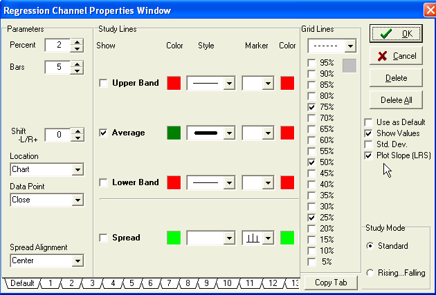 Linear Regression Slope study would select the Regression Channel
