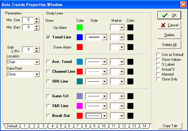 The last two options for the Auto Trends tool can be