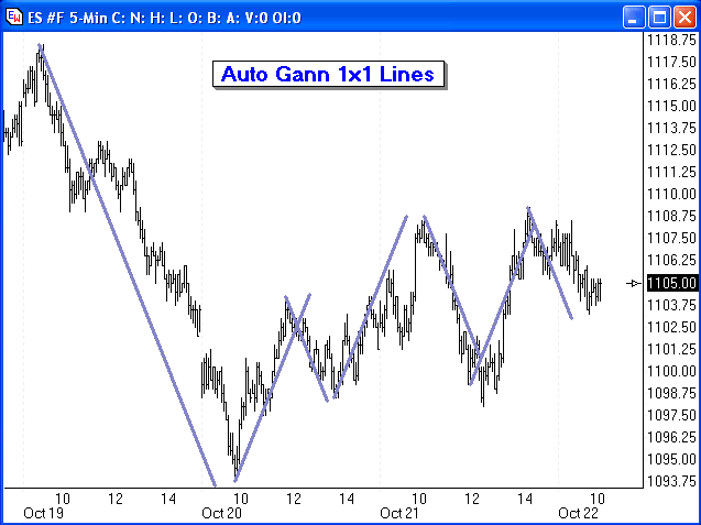 The Gann 1x1 option will automatically place the 1x1