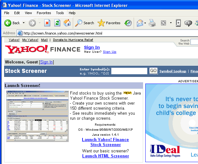 Click on "Launch Yahoo! Finance Stock Screener"
