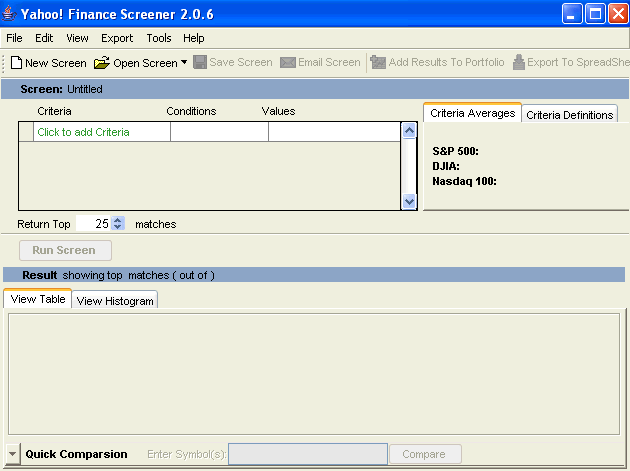 Click on "Yes" and the following window for the stock screener will