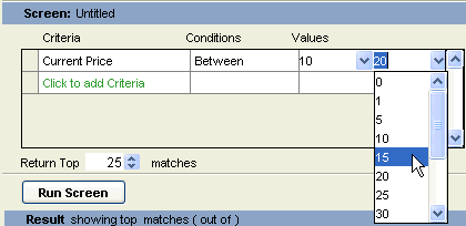 the top of the program. This stock screener is easy to use,