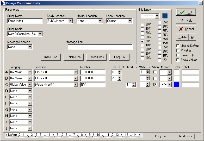 Here are the Ensign Window’s properties for the Force Index: