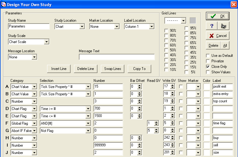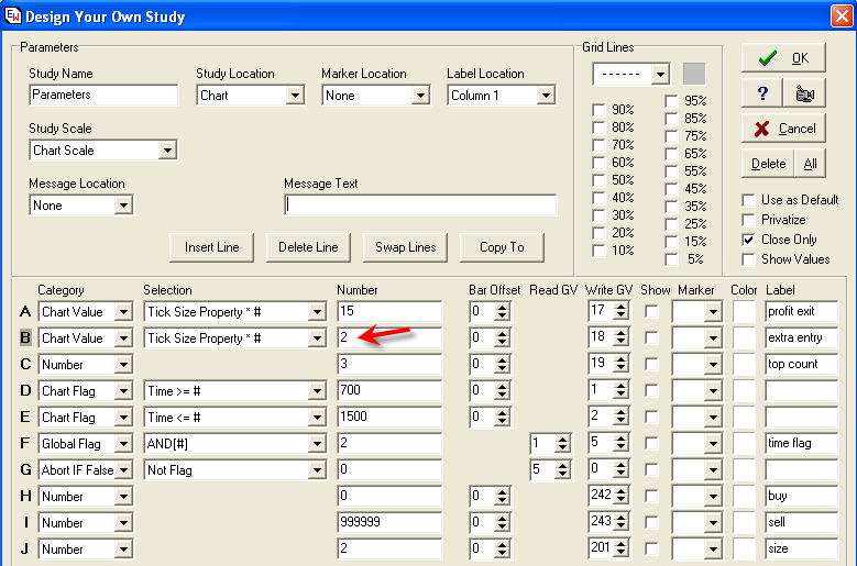 unique for a symbol. This Line A profit objective is 15 ticks