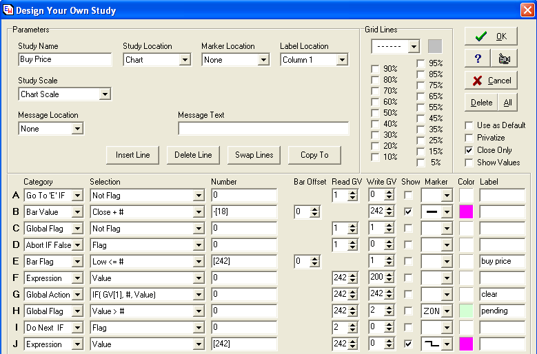 condition is True, Line B will reset the pending Buy price in