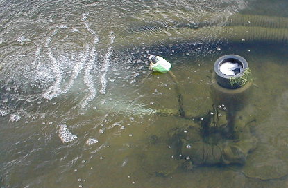 pipes. Algae grows on the ends which trail into the water. Since I wanted