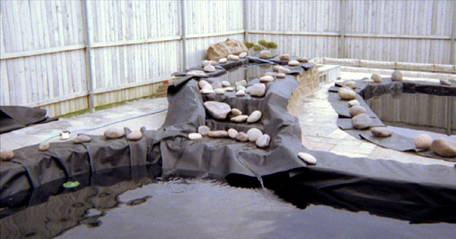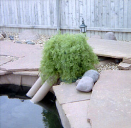 Behind the Waterlily Pond you can see a large white box -- the Veggie Filter. The