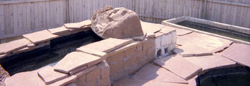 - The large flagstone pieces are being installed around the Fish Pond. The
