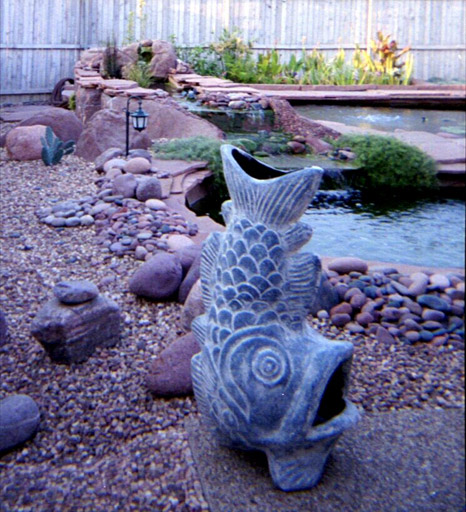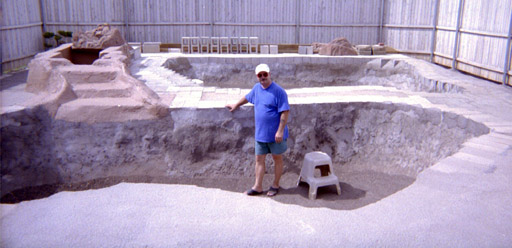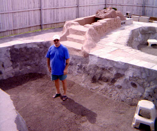 - My husband Mike is standing in the Fish Pond. You will notice that the sides have been covered with a thin layer of cement